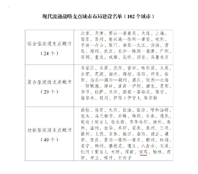 为贯彻党的二十大报告有关部署、落实《“十四五”现代流通体系建设规划》相关要求,推动构建高效顺畅的现代流通体系,近日,国家发展改革委会同自然资源部、交通运输部、商务部、市场监管总局印发《关于布局建设现代流通战略支点城市的通知》,部署现代流通战略支点城市布局建设工作。