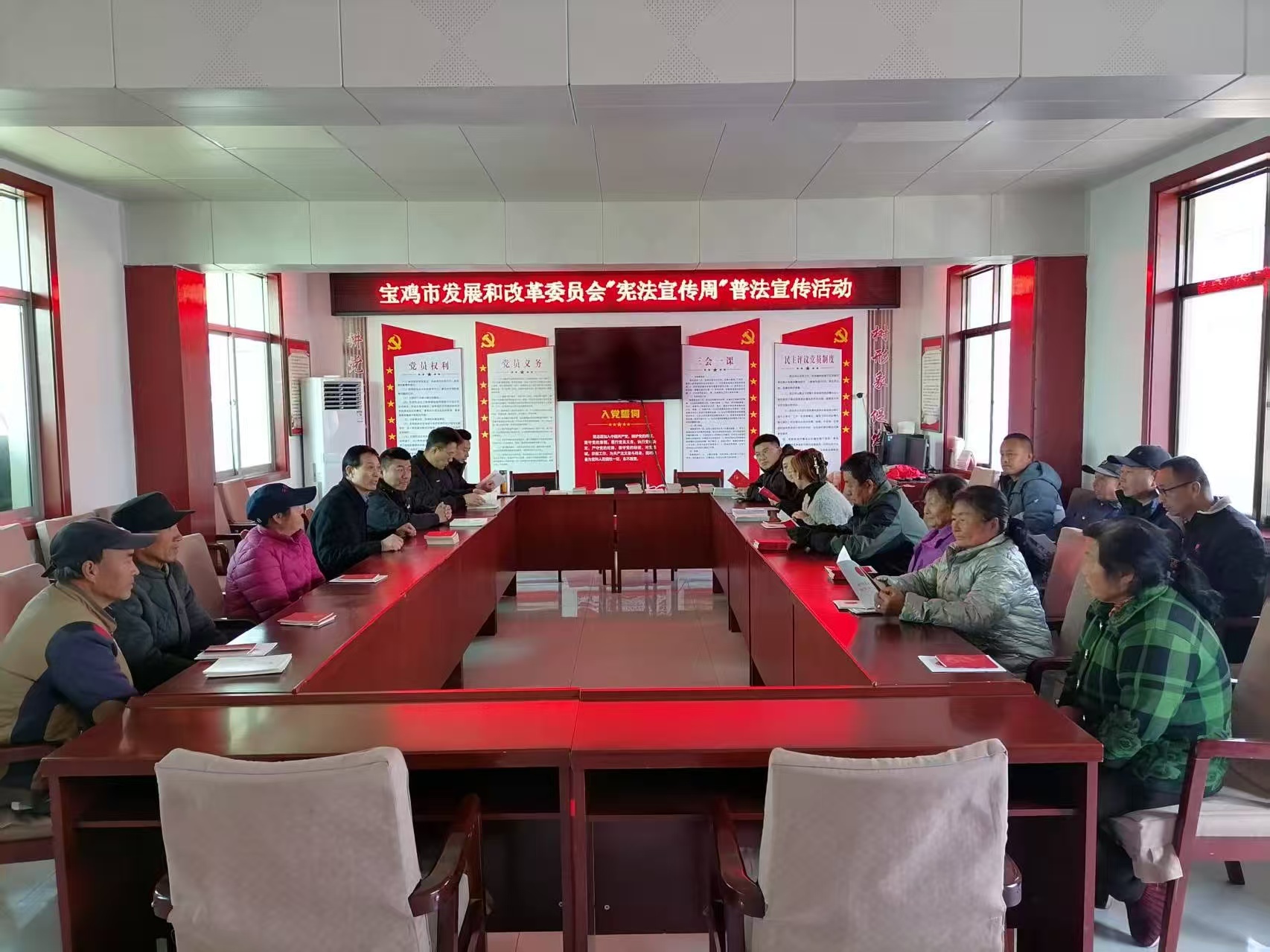 为深入学习宣传贯彻习近平法治思想,推动宪法深入人心,12月4日至5日,我委开展了宪法“进社区、进乡村”普法宣传活动。在金台区十里铺街道西建社区向群众发放《宪法》《中华人民共和国节约能源法》《粮食安全保障法》《陕西省秦岭生态环境保护条例》及秦岭生态环境保护普法宣传画等3200余份宣传资料,用通俗易懂的语言讲解宪法基本内容、公民基本权利与义务等核心知识,引导群众树立“学法、懂法、守法、用法”的法治理念。委法律顾问聚焦群众日常生产生活遇到的各类法律问题,提供40余人次“一对一”现场解答,切实帮助群众化解难题。在定点帮扶的千阳县城关镇新兴村开展“送法上门”活动,发放《宪法》等宣传资料500余份,为村民重点讲解宪法关于“三农”工作规定,宣传粮食安全、乡村振兴等相关法律法规,引导村民树立粮安国安、民富国富的观念。