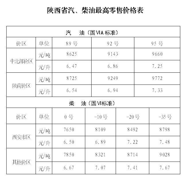 根据《石油价格管理办法》和国家发展改革委公布的国内成品油价格调整信息,现将我省汽、柴油最高零售价格公布如下,自2025年6月3日24时起执行。